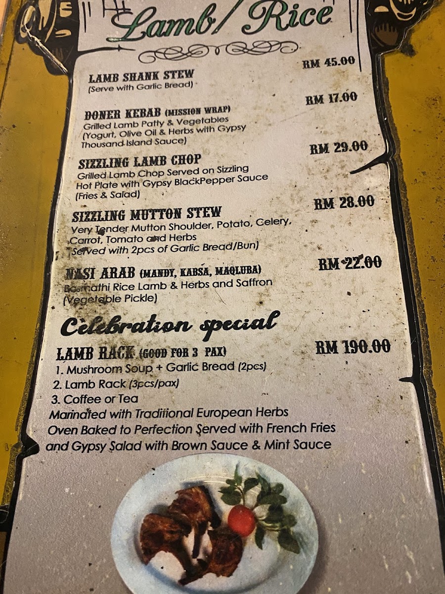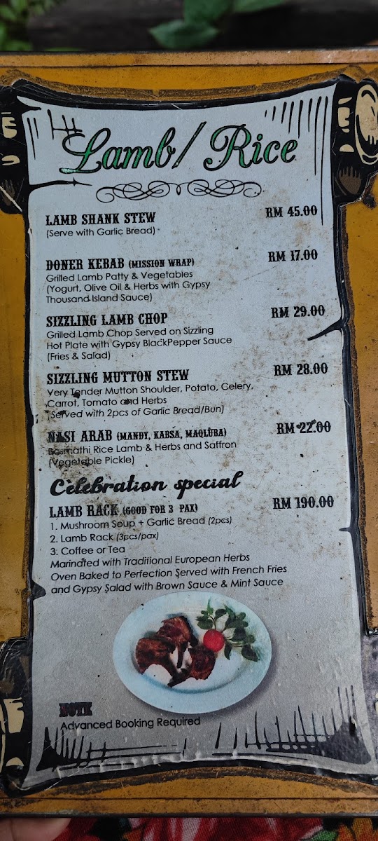 Welcome to Gypsy Garden Jerantut Cafe, a hidden gem nestled in Jerantut, Pahang. This enchanting cafe combines unique decor and a cozy atmosphere, making it an ideal spot for a memorable dinner. As you settle in, prepare to indulge in a menu that boasts delectable dishes like Gypsy Roasted Chicken served with creamy sauce and crispy fries for just MYR 18.00 and the mouthwatering Sizzling Lamb Chop at MYR 29.00. Each dish is crafted with love and care, echoing the owners' dedication to hospitality.